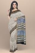 Bagru Kalamkari Buti Hand Block Printed Cotton Zari Saree