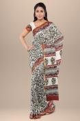 Bagru Kalamkari Jaal Hand Block Printed Cotton Zari Saree