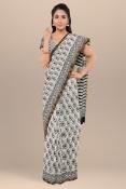 Bagru Kalamkari Buti Hand Block Printed Cotton Zari Saree