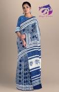Indigo Lehriya Hand Block Printed Cotton Malmal Saree