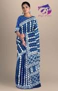 Indigo Triangle Hand Block Printed Cotton Malmal Saree