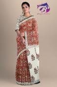 Cotton Malmal hand block print Saree. Hand block printing is done by help of wooden blocks, Bagru ( Jaipur ) is famous for such a printing. Cotton Malmal always give a decent, classy and elegant look. This saree can be paired with sandals and traditional jewelry. Cotton Malmal sarees are perfect option for Corporate function, Parties, Festivals. Its best gift for any women and girl.