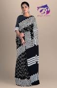 Black & White Chips Dot Hand Block Printed Cotton Malmal Saree