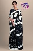 Black & White Square Skretch Hand Block Printed Cotton Malmal Saree