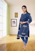Cotton hand block print Suit material. Hand block printing is done by help of wooden blocks, Bagru ( Jaipur ) is famous for such a printing. The Cotton Shirt length fabric is paired with self or matching block printed Cotton Bottoms and complementing Cotton Dupattas. Hand block print always give a decent, classy and elegant look. This suit can be paired with sandals and traditional Jewelry for chic look. Its best gift for any women and girl. This suit material give a classy look as kurta pant, kurta palazzo. kurta chudidar and kurta salwar.