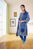 Cotton hand block print Suit material. Hand block printing is done by help of wooden blocks, Bagru ( Jaipur ) is famous for such a printing. The Cotton Shirt length fabric is paired with self or matching block printed Cotton Bottoms and complementing Kota Doria Dupattas. Hand block print always give a decent, classy and elegant look. This suit can be paired with sandals and traditional Jewelry for chic look. Its best gift for any women and girl. This suit material give a classy look as kurta pant, kurta palazzo. kurta chudidar and kurta salwar.