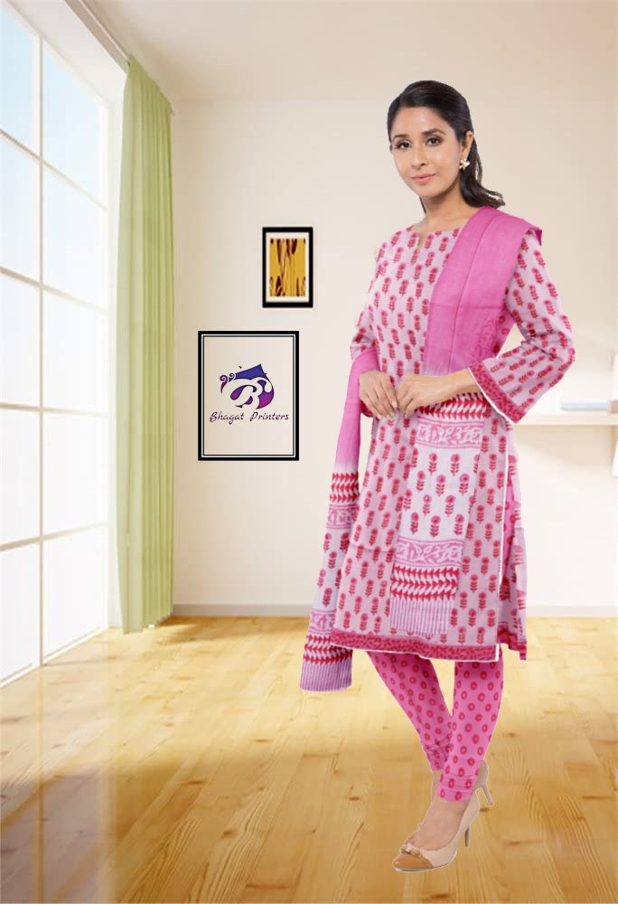 Bagru Multi Pink Jaal Hand Block Printed Unstitched Cotton Suit - Set With Cotton Dupatta