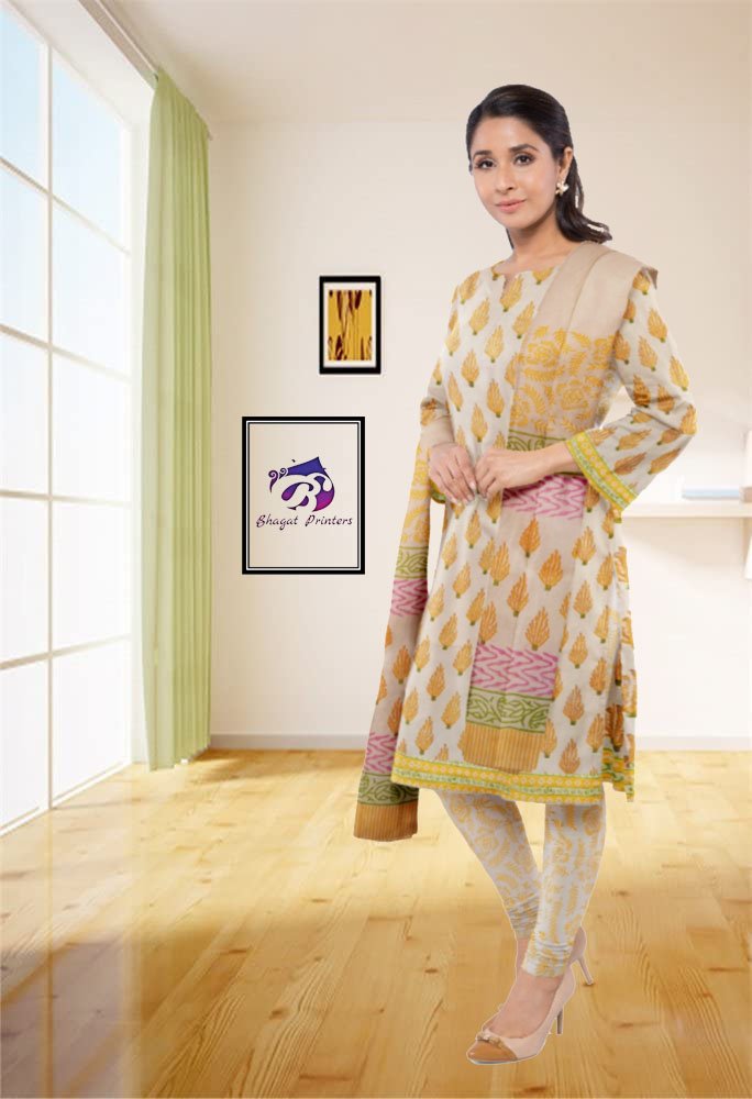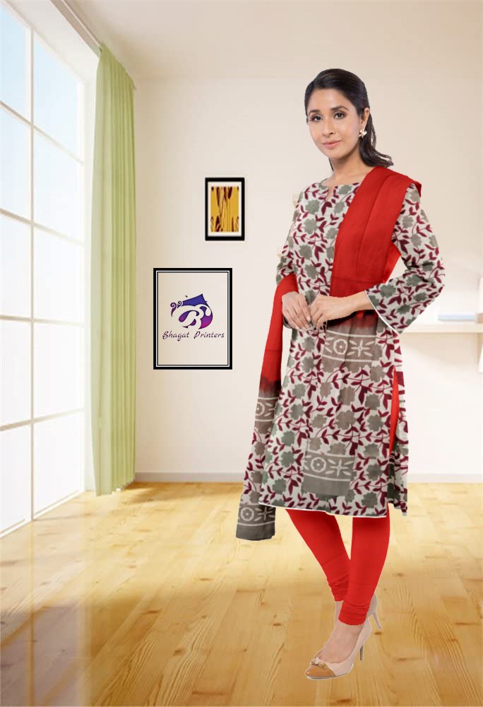 Unstitched Suits » Cotton Suit - Set With Cotton Dupatta