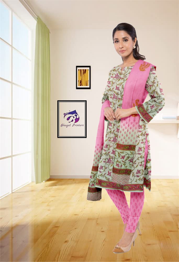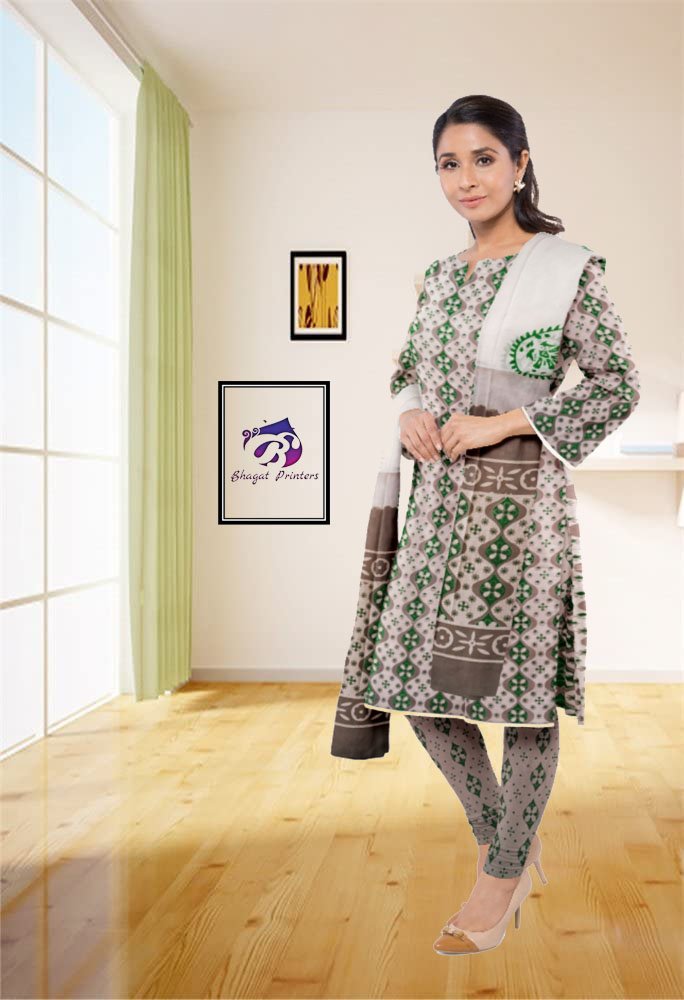 Bagru Multi Green Hand Block Printed Unstitched Cotton Suit - Set With Cotton Dupatta