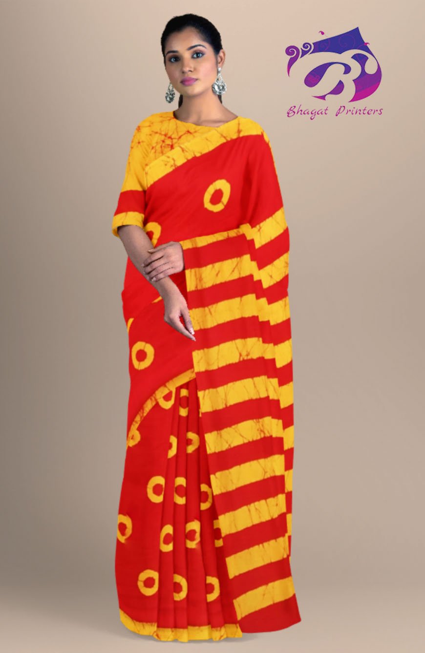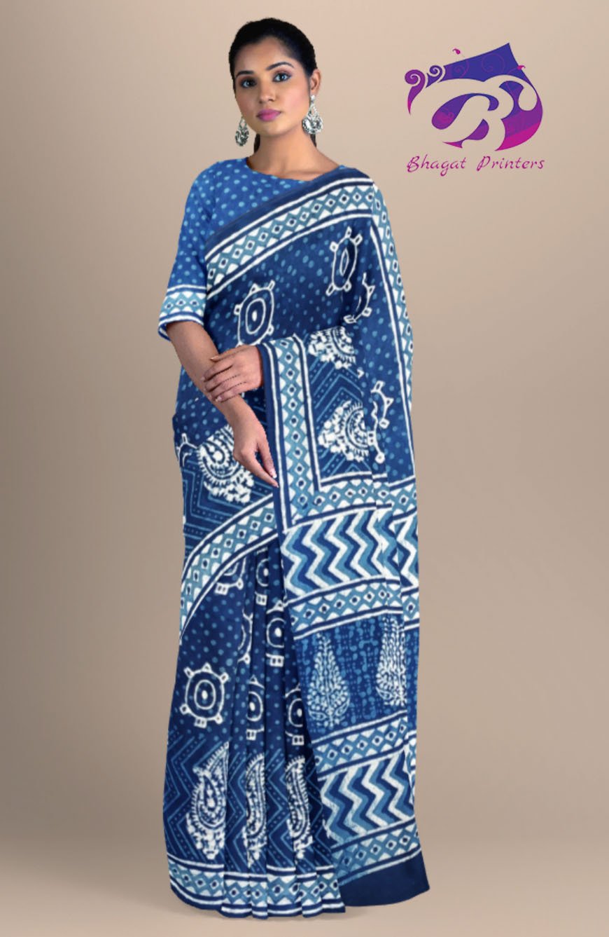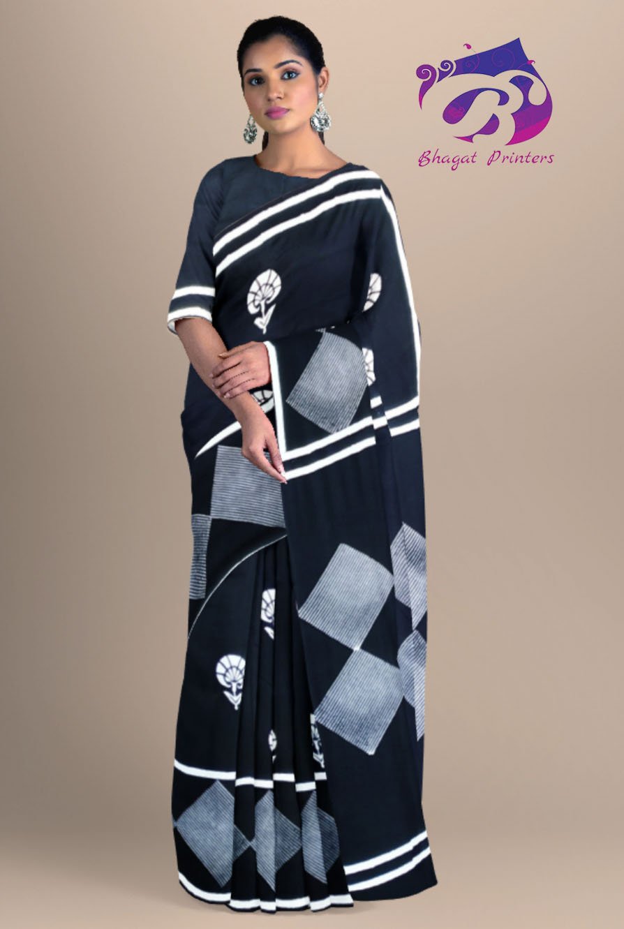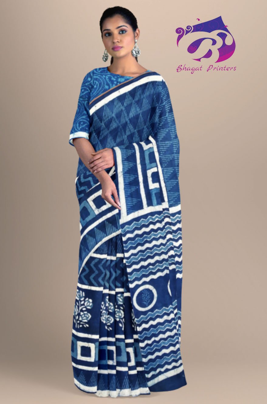 Wax Batik Hand Block Printed Cotton Malmal Saree