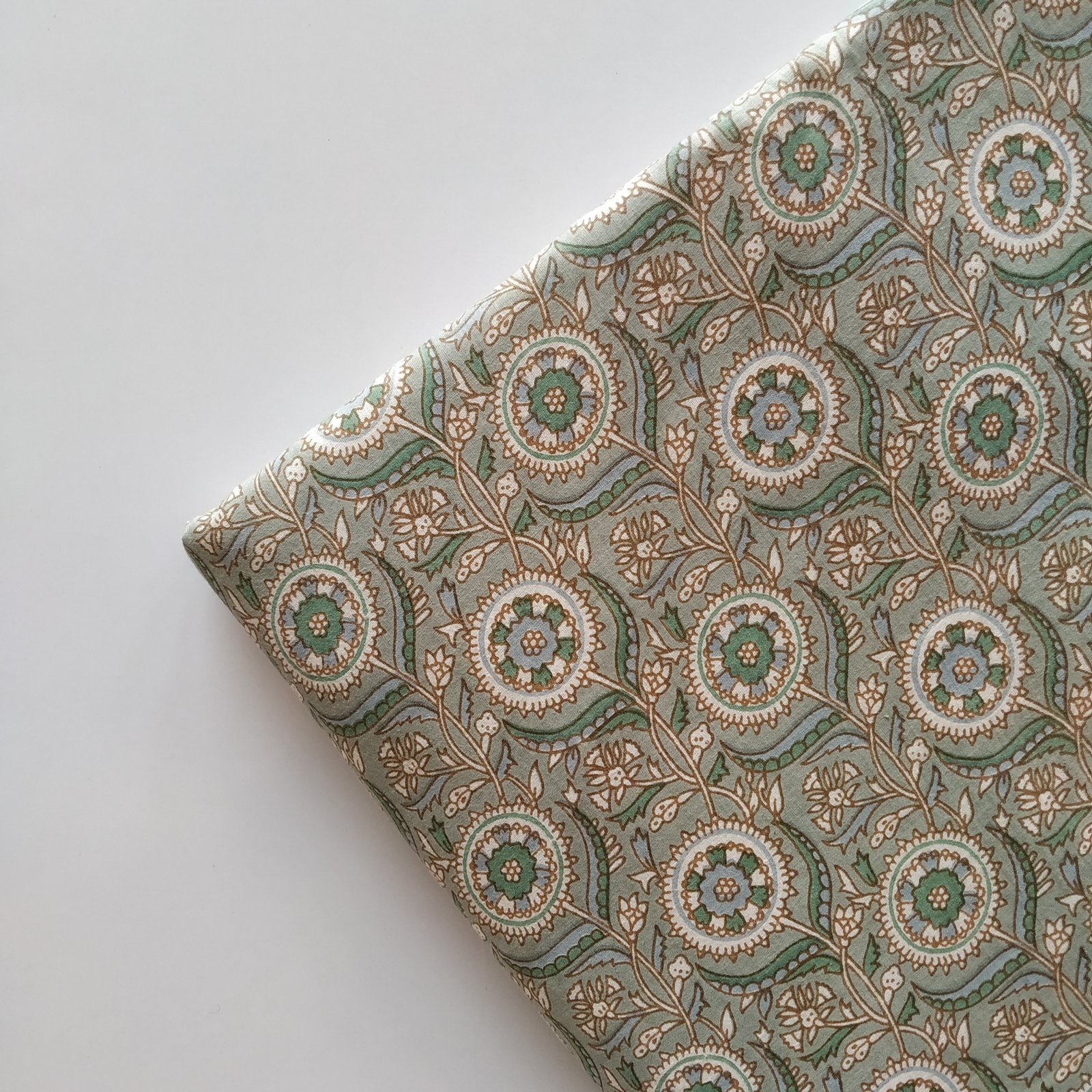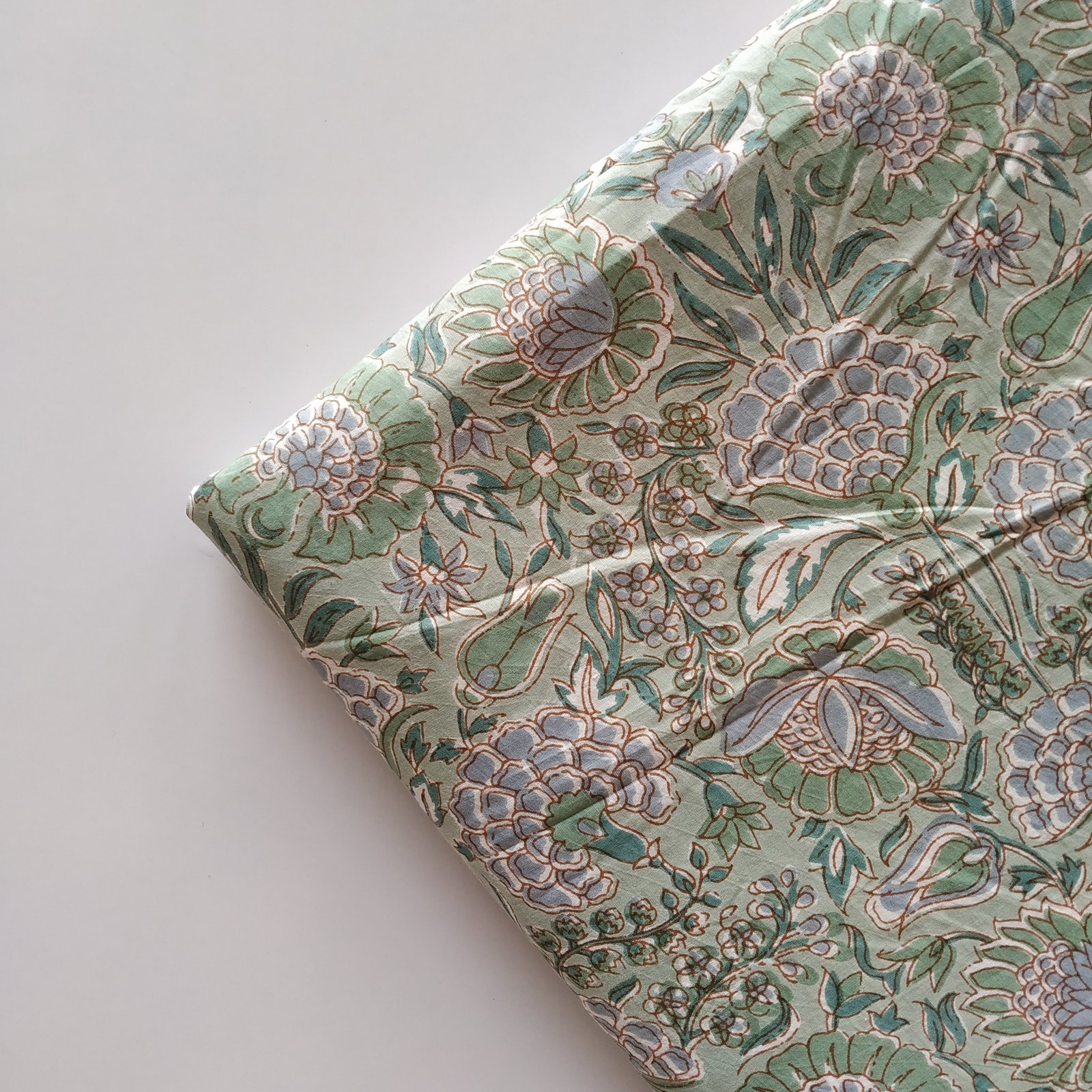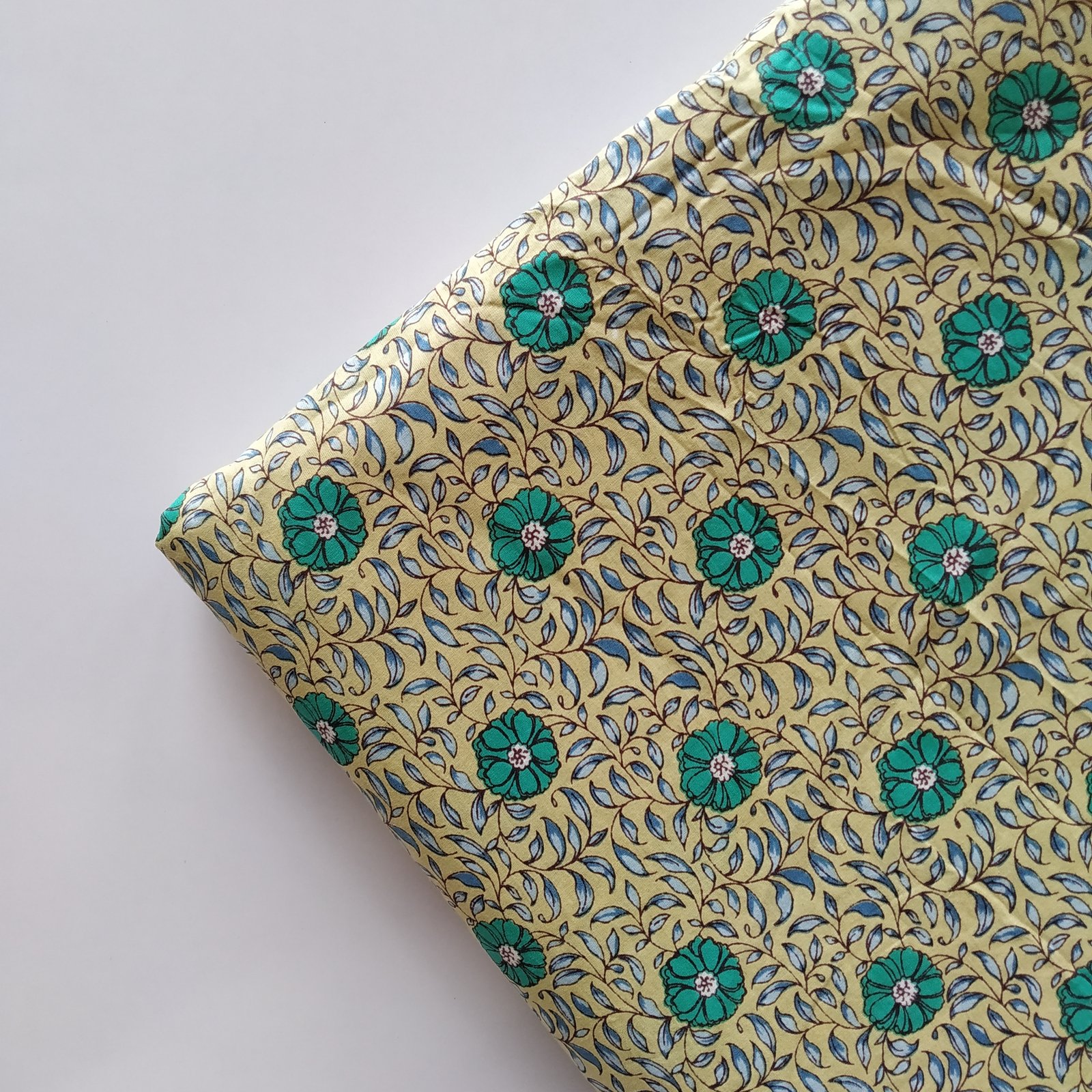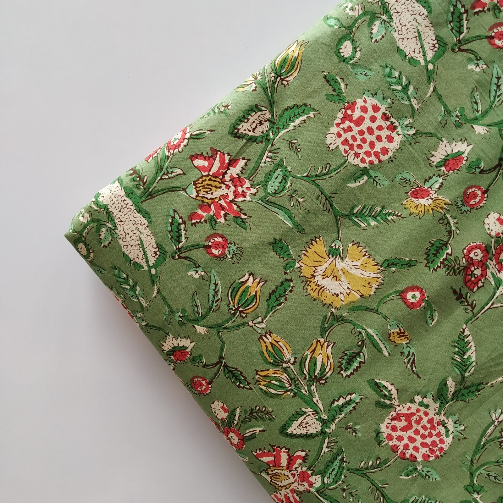 Green Floral Jaal Hand Printed Cotton Fabric Per Meter