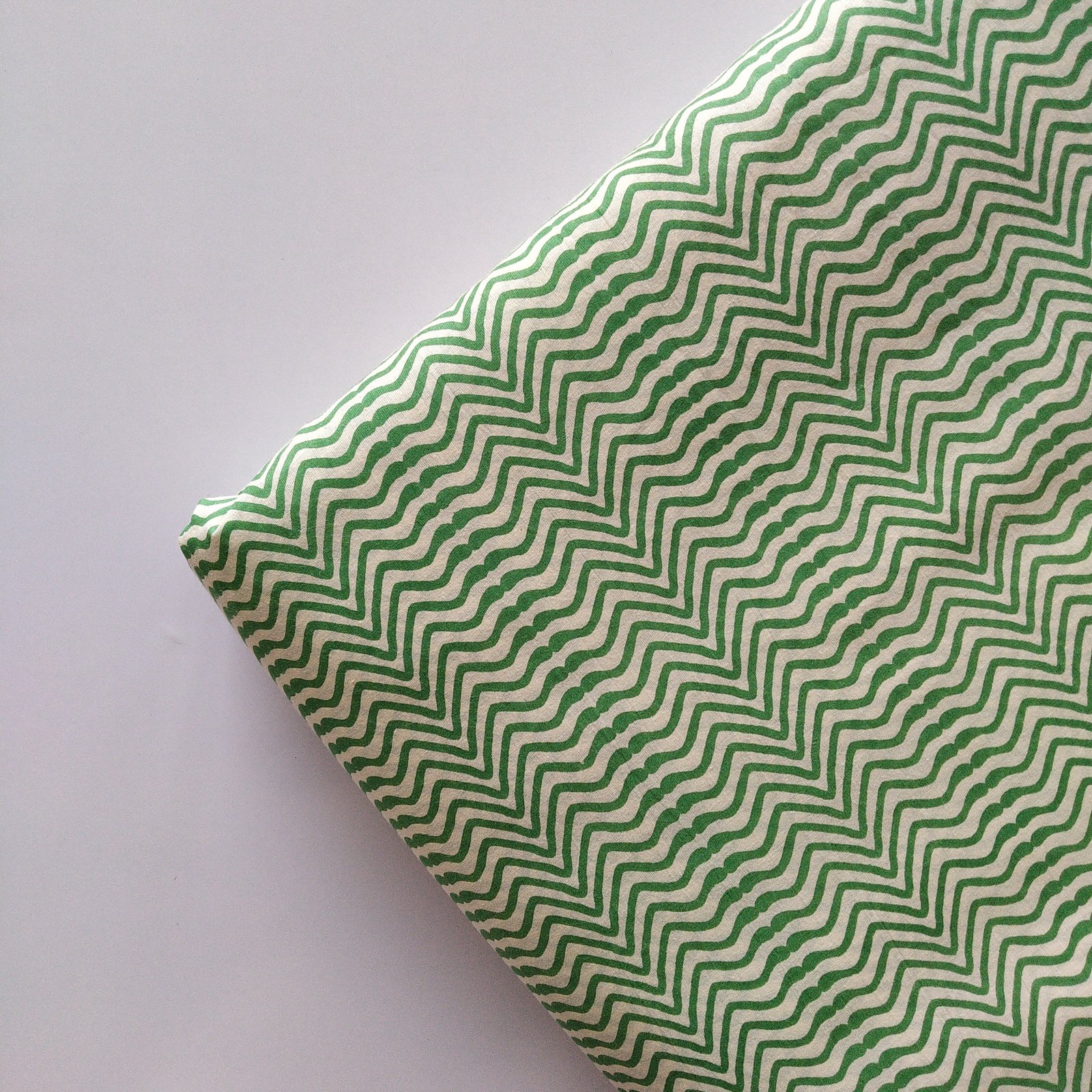 Green Lehriya Hand Printed Cotton Fabric Per Meter