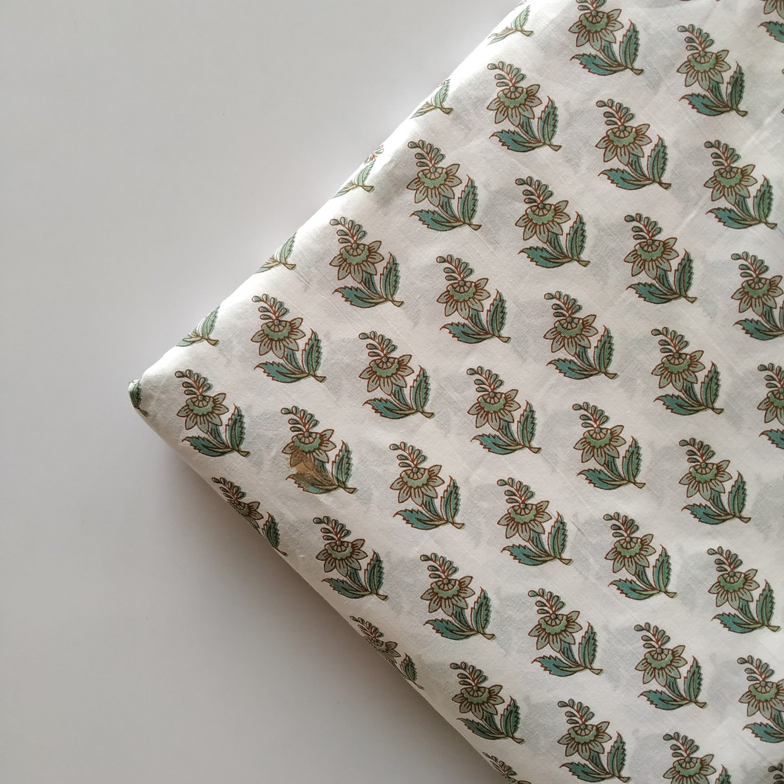 Green Buti Hand Printed Cotton Fabric Per Meter