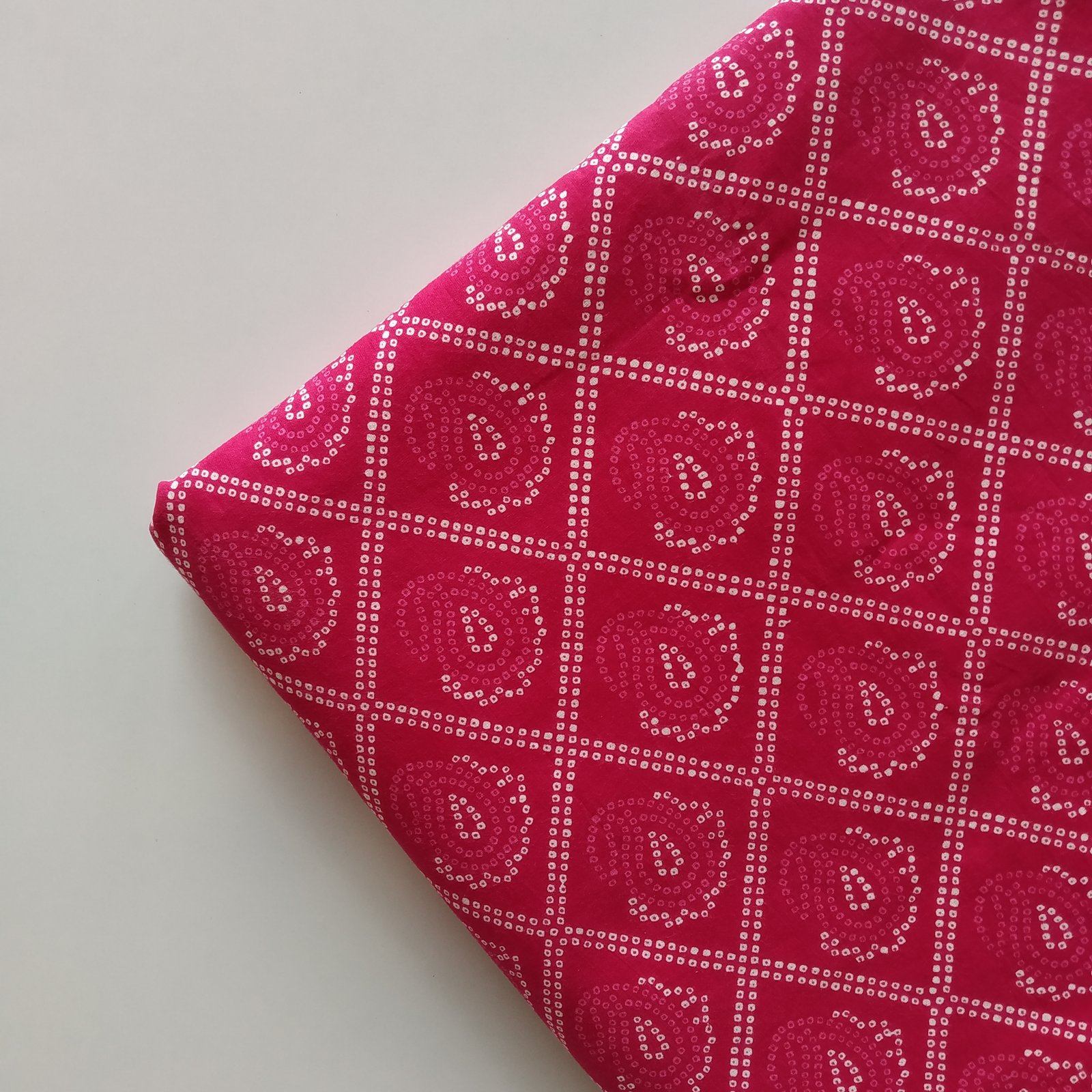 Hot Pink Bandhani Keri Hand Printed Cotton Fabric Per Meter