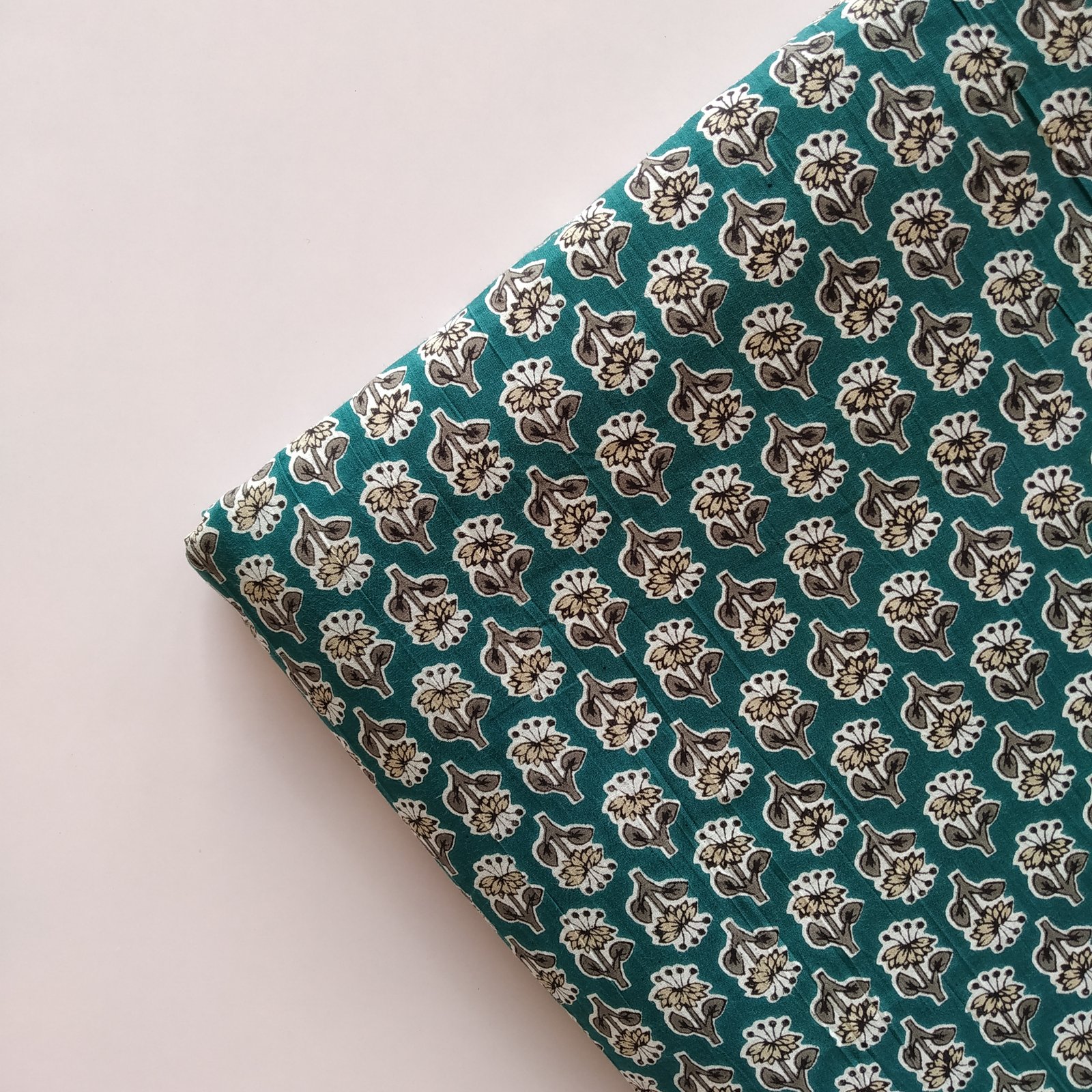 Bottle Green Floral Buti Hand Printed Cotton Fabric Per Meter